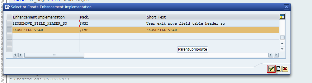 Choose the Enhancement Implementation you already created before, then click Enter.