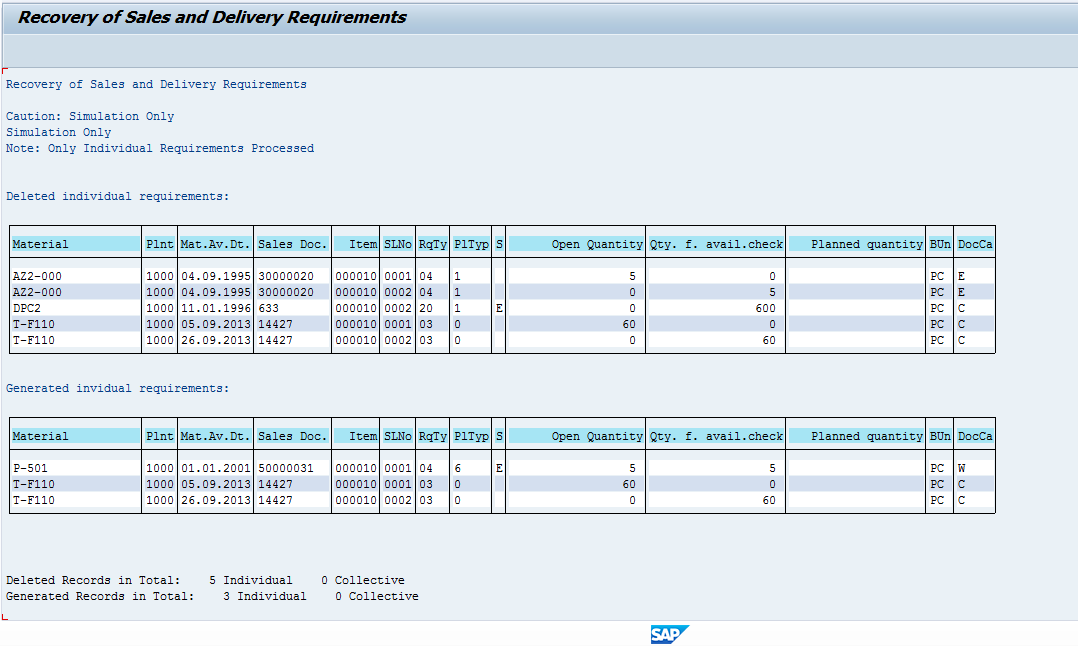 After, the report Recovery of Sales and Delivery Requirements appears, enter appropriate filter criteria that you want to analyze. Do not thick “Data transfer” if you just want to simulate. Let the selection rest by default, then click Execute.