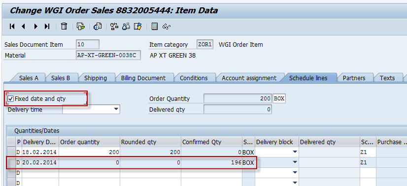 Let see on screenshot below, here the customer ordered 200 BOX and based on can only be confirmed 196 BOX. Then, check box Fix qty/date is ticked.