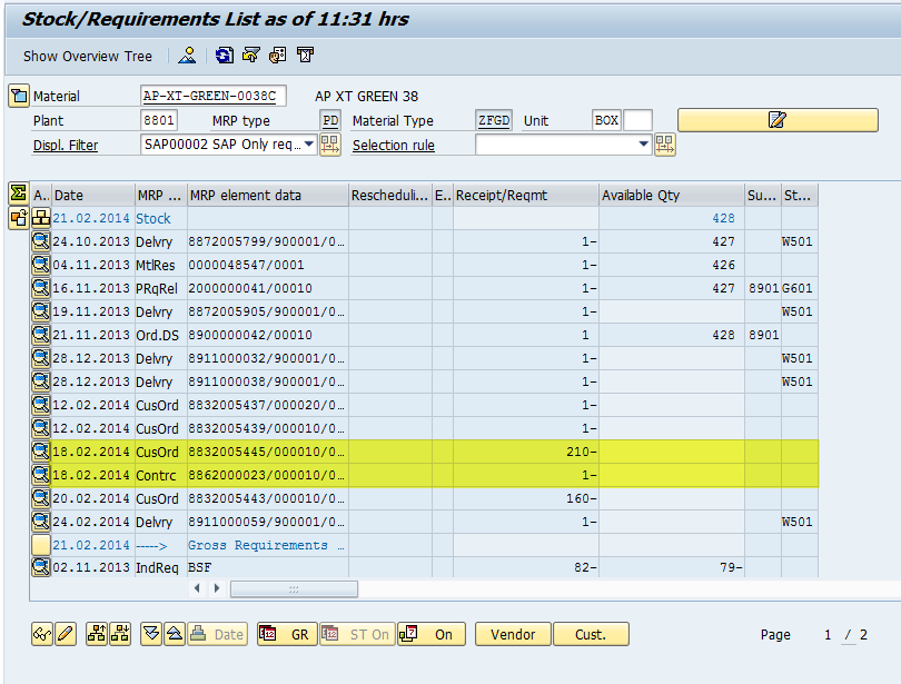 And surely, in program requirement list will not include your sales order number into the list. See on yellow mark below, on 18.02.2014, order 8832005444 does not appear.