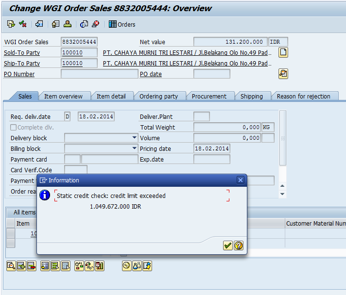 Fixed Quantity and Dates affect in Transfer Requirement and Credit Check